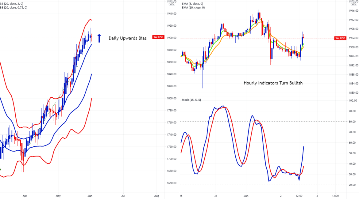 XAUUSD Buy The Dip Opportunity? By admin_mrketsIn ForexPosted June 2, 2021 XAUUSD Buy The Dip Opportunity? Gold/U.S. Dollar FX:XAUUSD FXCM The daily chart shows XAUUSD’s upwards bias. The hourly indicators have turned bullish .
